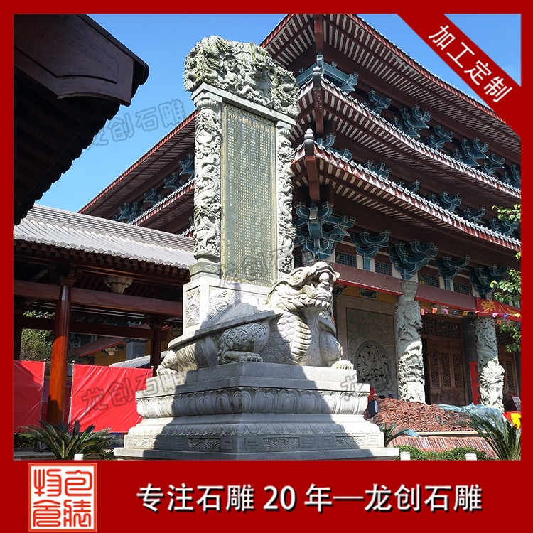 在現代社會,雖然許多傳統建筑已經失去了原有的文化意義,但龜馱碑依然被廣泛使用。常用于宗教場所,如寺廟、祠堂等,用來記錄寺廟或祠堂的歷史、宗教故事或教義。也常常出現在園林景區、公園和商業場所等公共空間,用來裝飾和美化環境。
