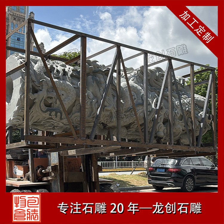 • 雕刻技法:局部磨光面+荔枝面+機切面,龍身浮 12-15公分(龍身分三段)